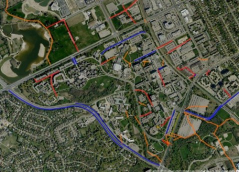 In the map above, I’ve tried to point out most of the problematic sections around UW, excepting the significant additional troubles of ongoing construction. Below are a few photos I took this week that give a feel for the kinds of problems pedestrians face on the University of Waterloo’s main campus. UW does have many portions that work fine for walking, but that is no excuse for its failures. Read More…