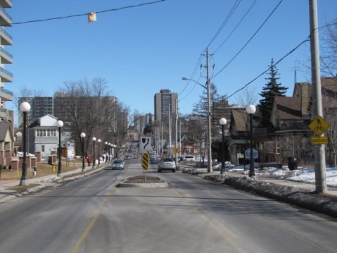 - Victoria St, Kitchener. Most cross the busy road here and cut straight through instead of taking the long detour to the light.