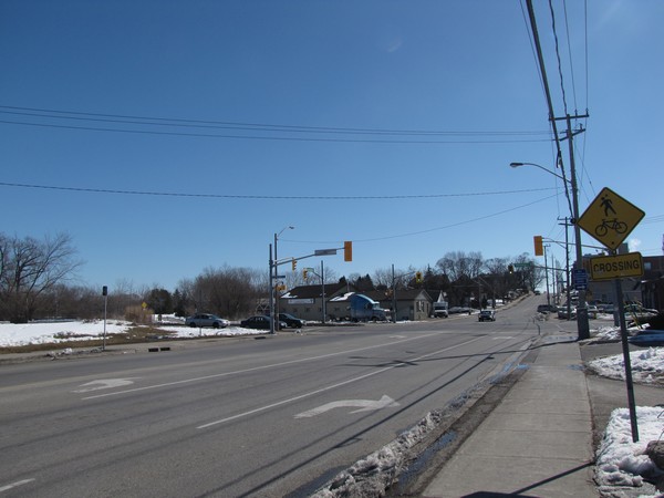 - West Ave, Kitchener. Most trail users cross here (as did the old railway), though they are supposed to go to the signalized intersection with Victoria St.